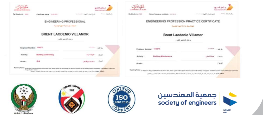 BTS UAE has an accredited technical staff members from Dubai Municipality for Building maintenance and Building constructions up to G+4. We are also knowledgeable for all types of regulations, legal aspects, contracts, maintenance regulations, authority approvals DM-ADM-DCD-DDA-TRAKHEES-EMAAR-NAKHEEL, community management through the guidance of UAE Engineering Society Association for the best Engineering practices in GCC.